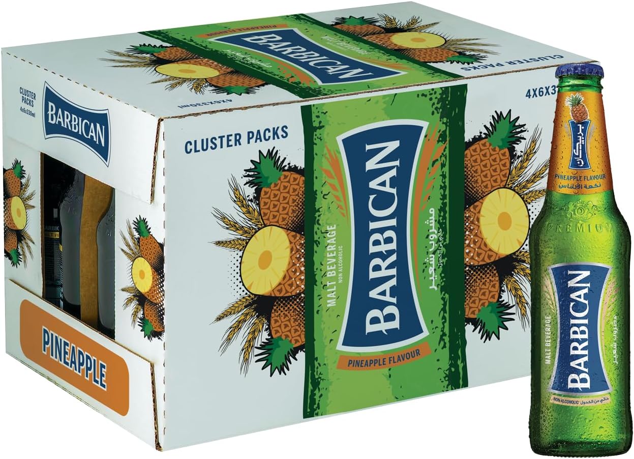Barbican Pineapple 24 x 330ml packs a tropical malt beverage punch in bulk cans, swirling carbonated water, sugar, malt concentrate, and pineapple flavors for a crisp, sweet-tangy fizz around 41 kcal/100ml that’s non-alcoholic and ideal for gatherings. Party hosts and stores stock this 24-can carton for its barley-based energy lift and foamy head chill ice-cold, crack open solo or in mocktails, and keep cool post-opening to savor the pineapple paradise vibe.