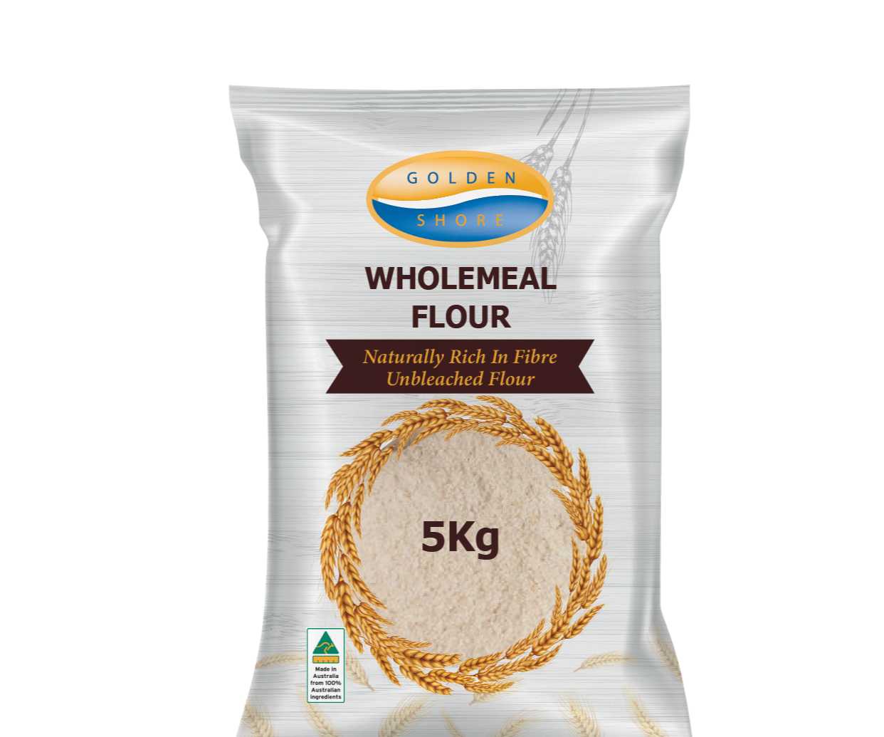 GS Wholemeal Flour G/S 5KG is stoneground whole wheat flour retaining bran/germ for nutty flavor, higher fiber (12g/100g), B-vitamins in 5kg bag, ideal for hearty breads, nutrition-dense.