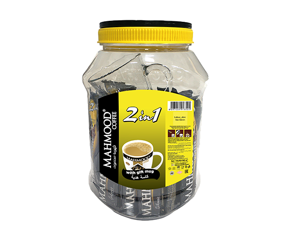 Mahmood Coffee 2in1 jar 6 x 42 x 10g is 6 jars of 42 sachets (252 total) instant coffee + creamer/sugar mix, creamy sugar-free quick brew, office/home convenience.