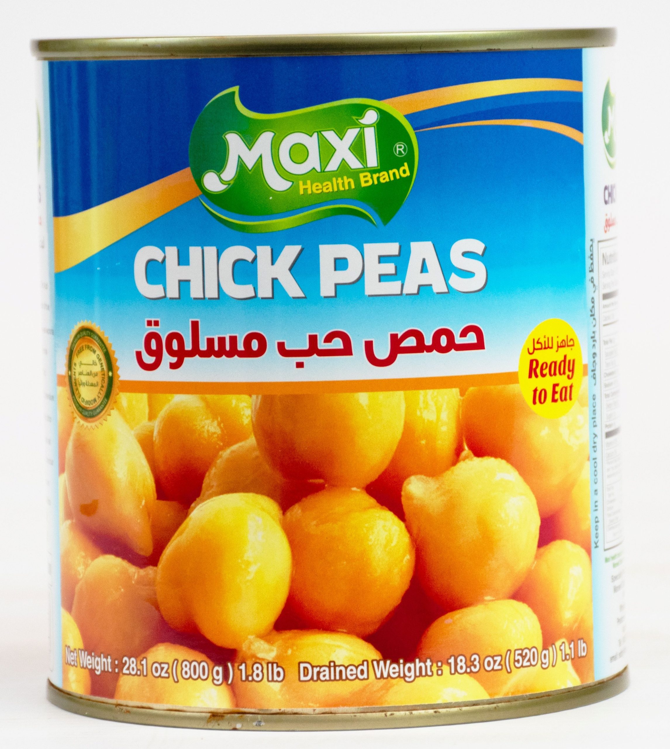 Maxi Chick Peas 800g cans cooked garbanzo beans, versatile for hummus, falafel, curries, high protein (8g/100g drained).