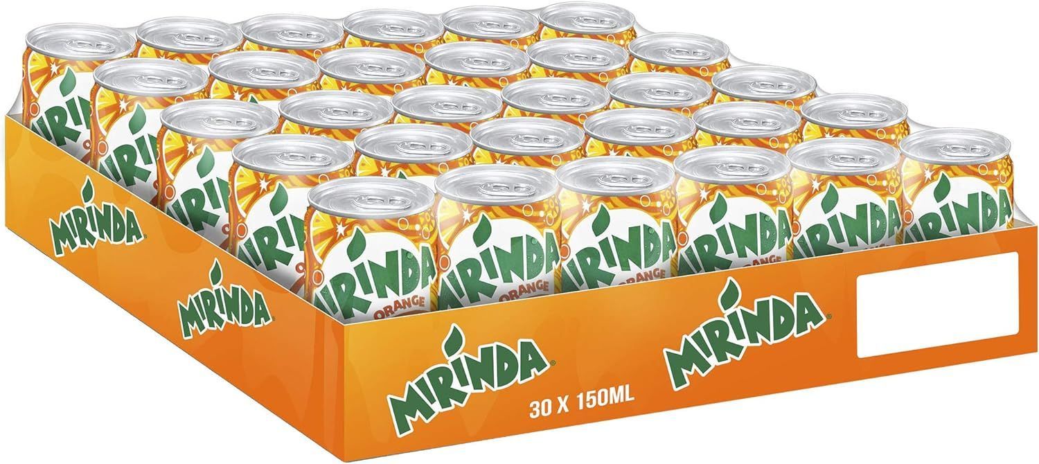 Miranda Cans 30 x 150ml sold in pallet configuration amps up retail and party stocking with mini cans of bold orange fizz, crafted from carbonated water, sugar, orange flavors, and citric acid for that sharp, refreshing tang around 40-45 kcal/100ml. This pallet setup lets wholesalers move volume fast chill the cans fully, pop for instant citrus kicks or mixes, and keep stacked cool for peak bubbly performance.