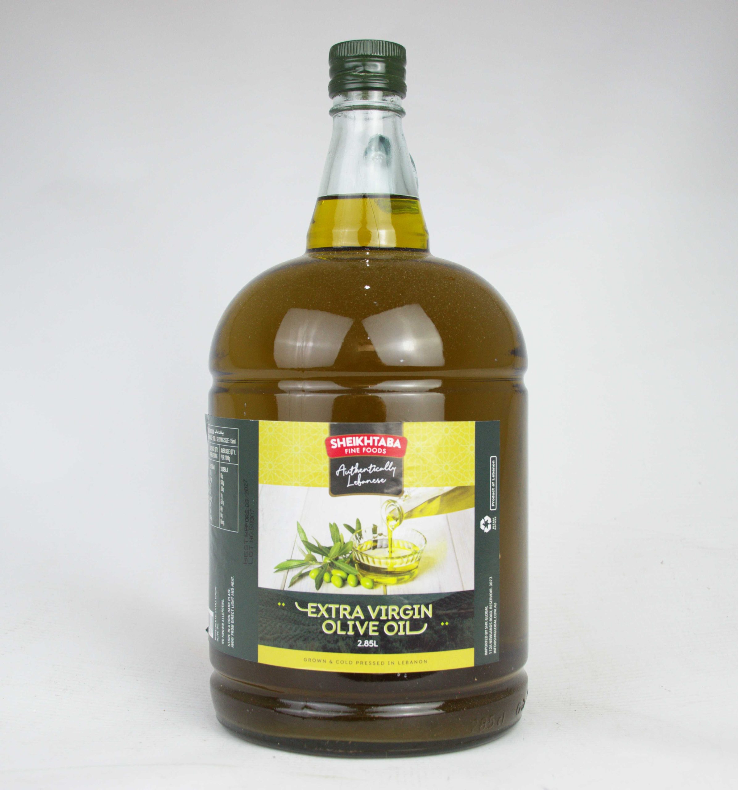 Sheikhtaba Extra Virgin Olive Oil 4×2.85L is 11.4L bulk EVOO, high-quality balanced for everyday cooking/finishing, value catering size.